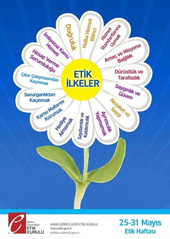 Bu çerçevede, kurum ve kuruluşlarda etik kültürünü yerleştirmek ve geliştirmek amacıyla , Etik günü (25 Mayıs) ve Haftası’nda (25 Mayıs-31 Mayıs 2012) çeşitli etkinlikler gerçekleştirilmektedir.